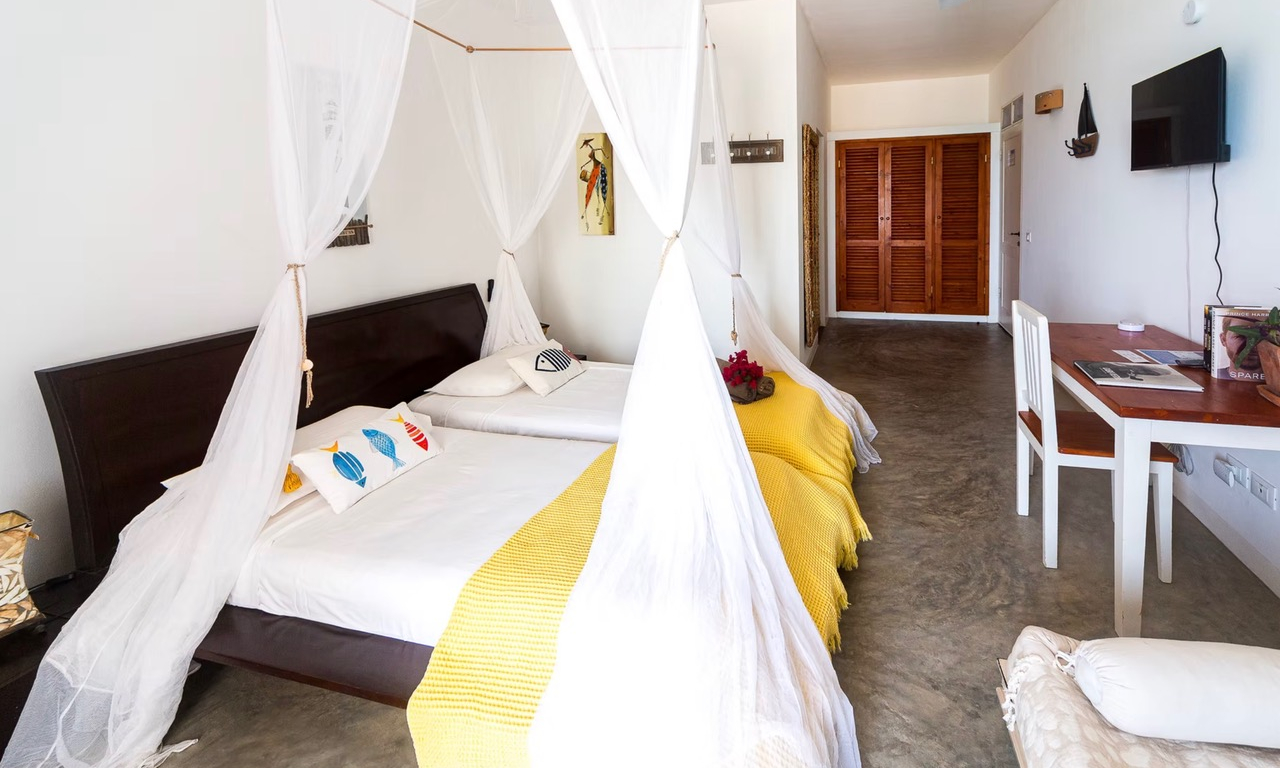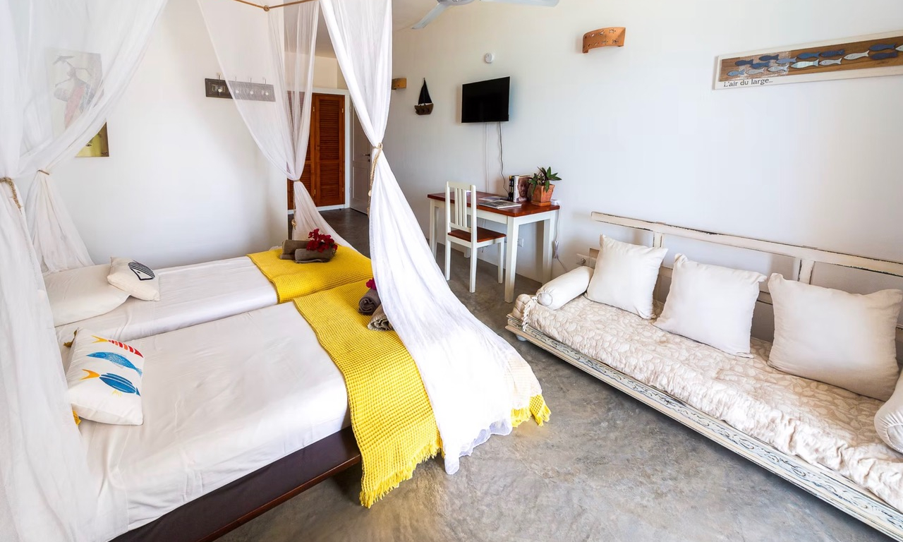 Apresentamos à venda um B&B em funcionamento localizado no bairro histórico de Santa Barbara, a poucos minutos a pé do centro de Sal Rei, na ilha de Boa Vista, em Cabo Verde.